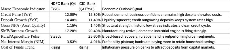 • The Consumption Pivot: The high growth in ICICI’s rural book and HDFC’s SME book suggests the economy is shifting from a “premium urban consumption” model to a “broad-based manufacturing/rural” model.